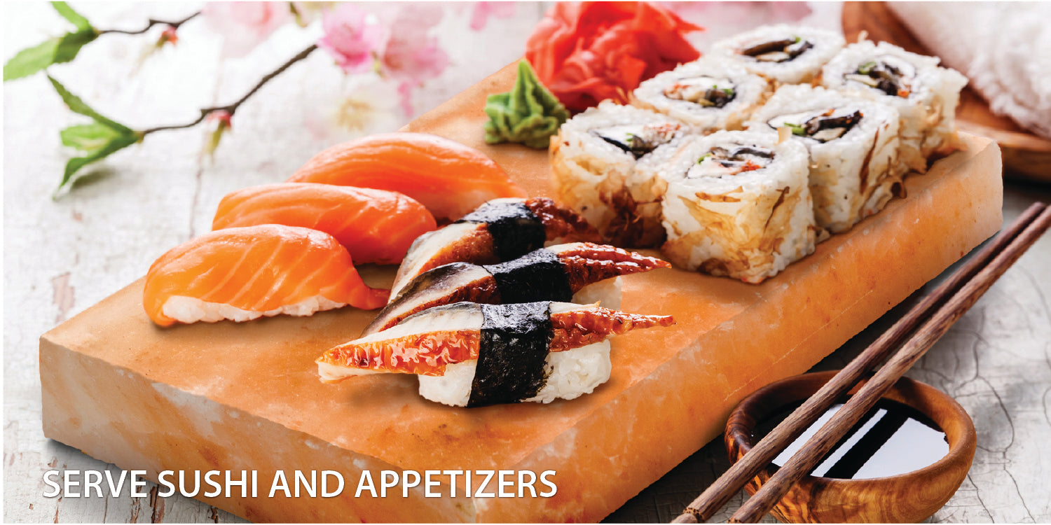 Place in the fridge and then use as a serving plate for sushi or other appetizers and impress friends and family. Food coming in contact will impart a small bit of salt the longer it is in contact so time it carefully, though.
