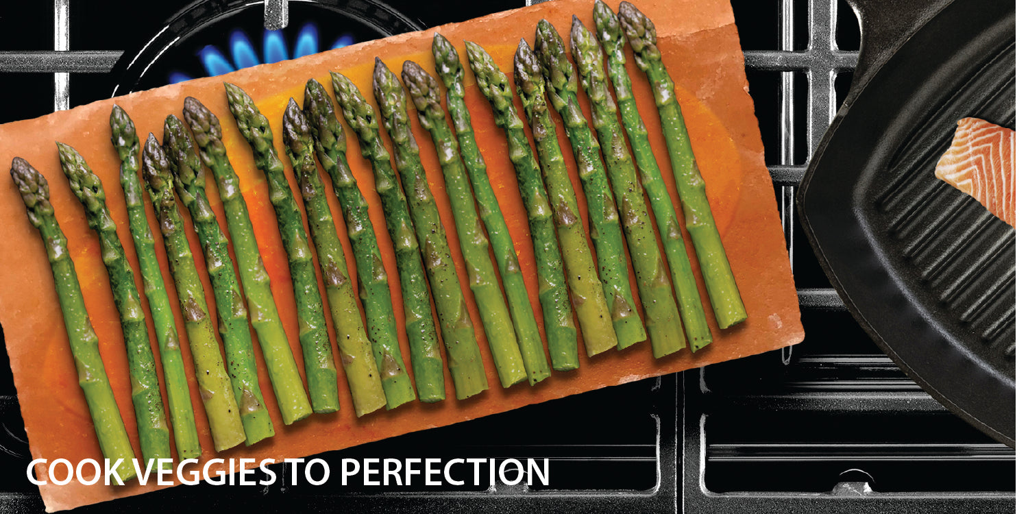 Himalayan salt cooking bricks will heat to over 450 degrees and will sear and season your favorite foods, infusing a small amount of healthy, mineral-rich salt in your food. Use this block for cooking, chilling, and serving - heat it up to sear steaks and seafood, or chill it to serve vegetables or even ice cream!