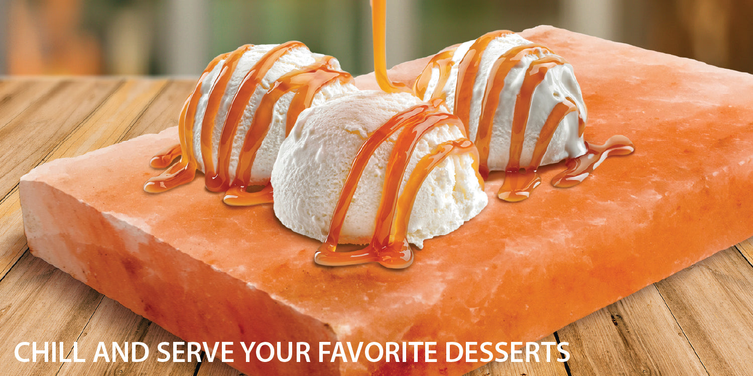 These Himalayan Salt blocks are great for chilling and using as serving platters. Place in the freezer to chill and then serve a salted caramel ice cream sunday on a cold stone.